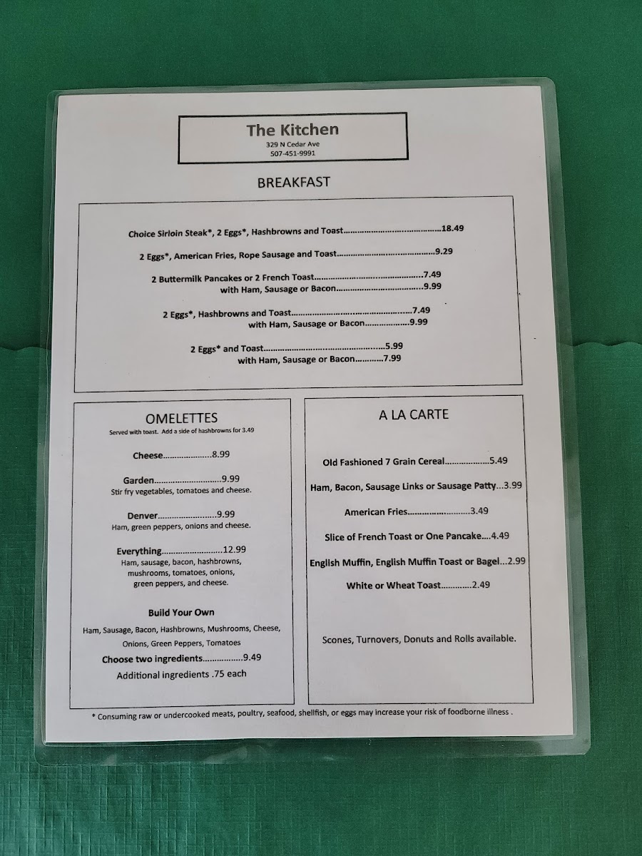 Customer reviews highlight the warm and inviting atmosphere, with mentions of returning for more delightful meals. With dishes crafted to evoke nostalgia and flavors that warm the soul, "The Kitchen - Owatonna" is a must-visit culinary gem that embraces cozy dining while fostering a genuine connection with the community. Dive into a plate of nostalgia and experience the timeless charm of a hometown diner!